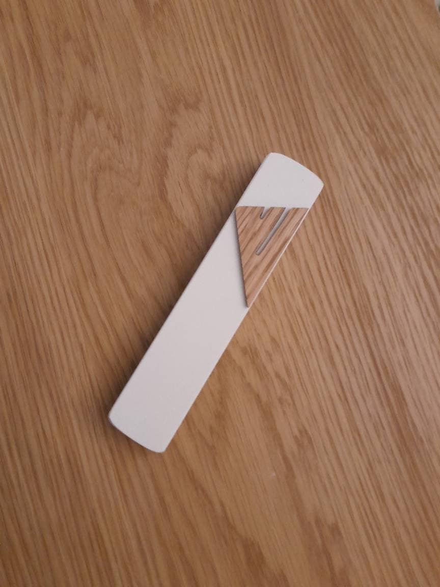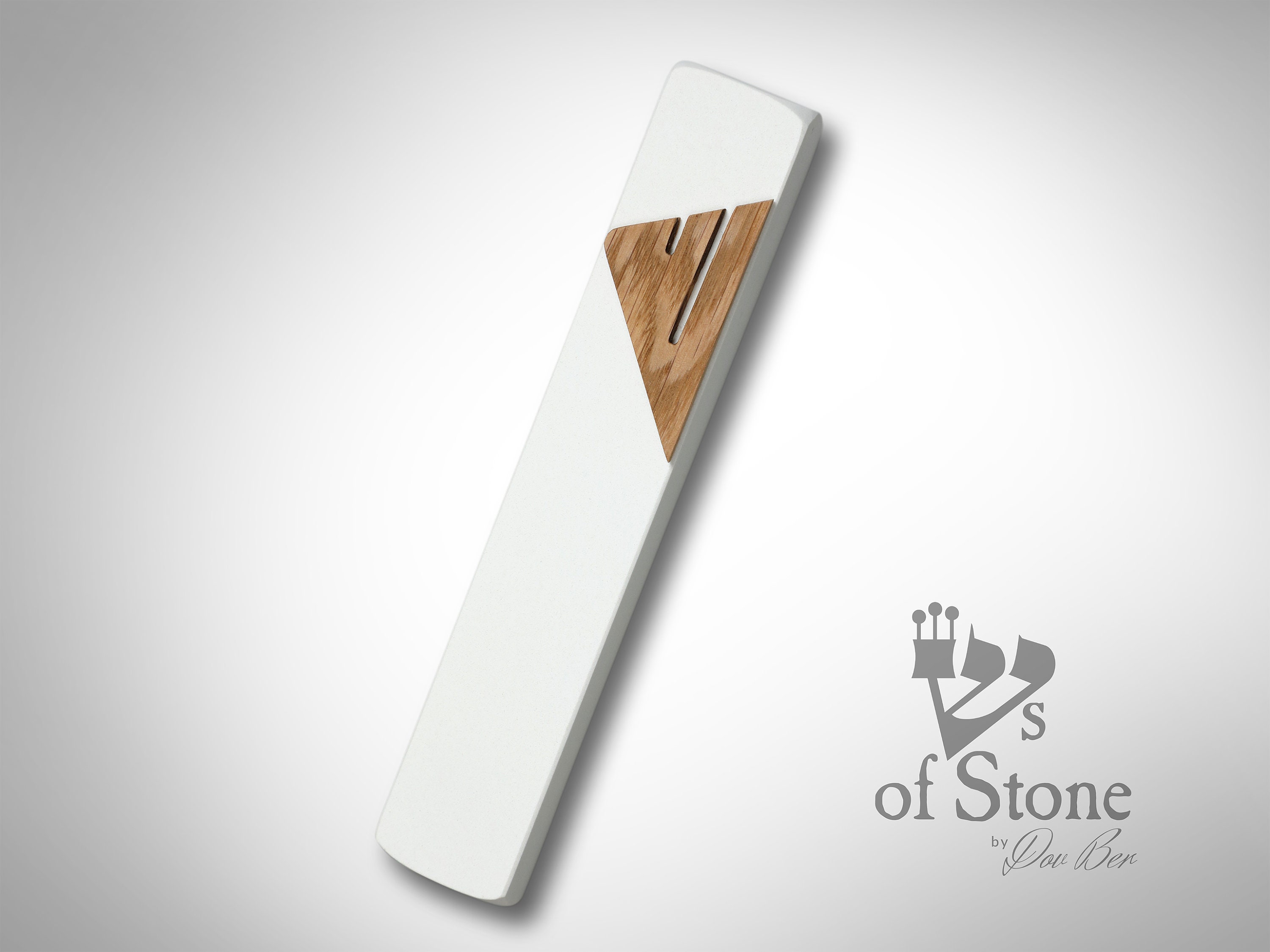 all of our products are handmad from the highest quality materials. real stone mezuzahs last for many decades and dont fade or lose colorPure white stone modern mezuzah case with oak shin for scroll jewish gift